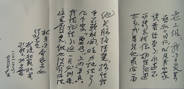 10时,腿残的张小曼女士(民盟中央原调研员)进屋,赵二军搬椅子请她坐下。她写下:“威武不屈,贫贱不移,富贵不淫,此之谓大丈夫,紫阳同志就是我心中的大丈夫,人民的好书记。”