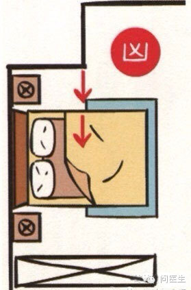 房门对到床,会因对到身体不同的部位,造成对应部位的功能性病变。房门与窗户是室内空气对流的进出口,睡眠状态时风会直接吹到身体,受到风寒的部位会造成病变。为考虑室内空气对流,一般的房门下缘都会留有细缝,所以就算是紧关着门,只要打开空调或窗户开一小缝,都能使室外空气进出。