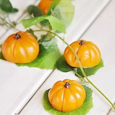 6)为了南瓜更像,更生动,再用可可面团,搓成小三角形;