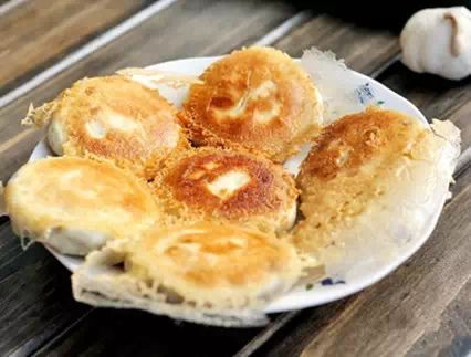 6)等包子熟了,面水快干的时候再转圈倒入油,改小火。等面水完全成糊咯吱了即可出锅(用一大尺寸的盘子盖在包子上,用手按住盘子,反转过锅来即可)。