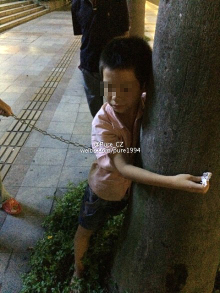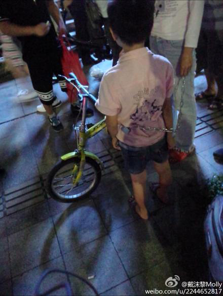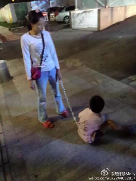 据了解,6日00:05,网友“戴沫黎Molly”发微博称:“今天在珠海十一点左右,一个女人骑着自行车,手里拴着链子,拖着男孩一直走……”“男孩脖子出血”,她在微博上附有几张图片。