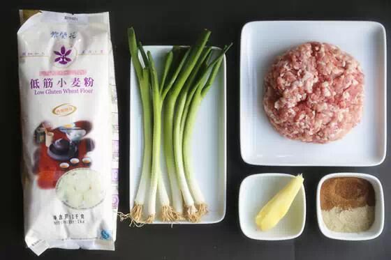 原料:猪肉馅(500g),清水(150ml),葱6根(Saled onions),姜一块,料酒(15ml),生抽(45ml),老抽(15ml),耗油(15ml),芝麻香油(几滴),糖(少许),色拉油(一汤匙),盐,鸡精,白胡椒粉,五香粉