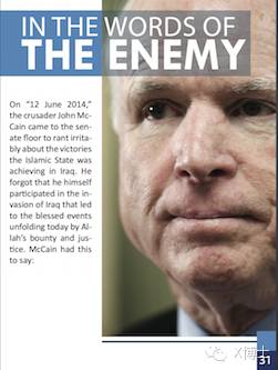 尤其反驳麦凯恩这期最犀利。麦凯恩称:“isis造成了伊拉克地区的恐怖和动荡”。isis反驳称:“美国忘了是谁最先攻打、侵略伊拉克了吗!”