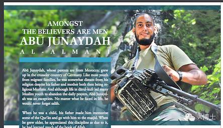 isis极其擅长运用传媒手段把他们的狂战士神话成一个个“圣战徒”。每期的《dabiq》都有一个专门的板块介绍模范战士。如图所示: