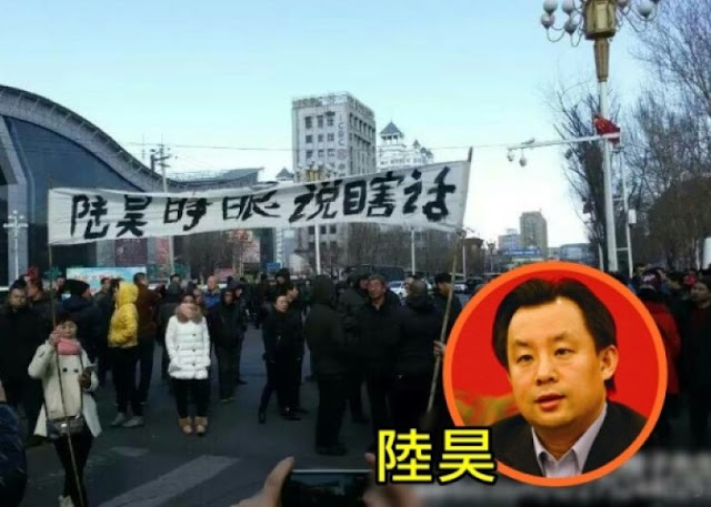 面对省长的夸夸海口,龙煤30万职工家属上街示威并直接打出了「陆昊睁眼说瞎话」的横幅加以遥相呼应。
