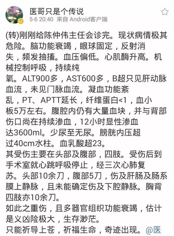 然而傍晚又传来不好的消息,经中山大学附院的专家教授会诊,传出消息:陈主任病情极其危险。