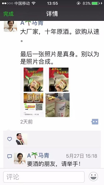 成都女诗人马青在微信推荐该酒,并贴出实物照片,据说亦被拘留