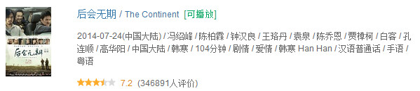 越走越顺,之后出演了韩寒处女作《后会无期》,许鞍华电影《黄金时代》,还有中法合拍大片《狼图腾》,这是华谊男艺人里,主演电影新作数量最多的。从豆瓣评分来看,影片口碑还不错。