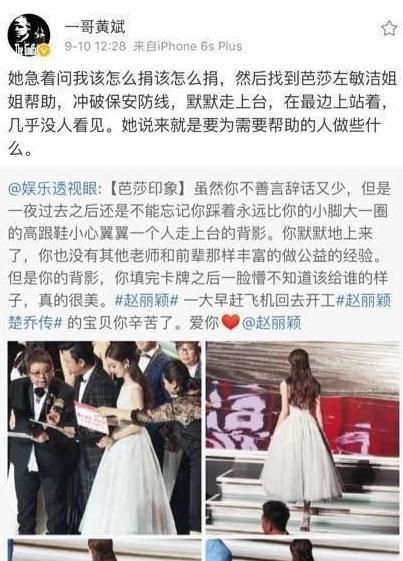 在芭莎明星慈善宴上,由于从未在公众场合上捐过款的赵丽颖有点不知所措,着急又害羞的颖宝只好请教经纪人,最后在工作人员的指引下最后一个上台,再默默地待在最角落的地方,低调的捐款70万。写完捐款数目之后,赵丽颖不知道接下来该做什么,呆萌的样子煞是可爱。