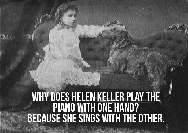你不能讲Hellen Keller相关的笑话。(嗯,我同意那些笑话可能比较无品。但关键是,那是笑话!似乎你不能讲任何笑话,因为所有的笑话,甚至所有的话,都有可能冒犯到一些人!)
