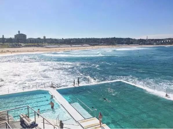 摄影师:蓝色海浪,白色浪花,澳大利亚悉尼的海滩令人向往