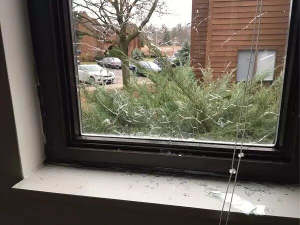 子弹打碎了部分玻璃