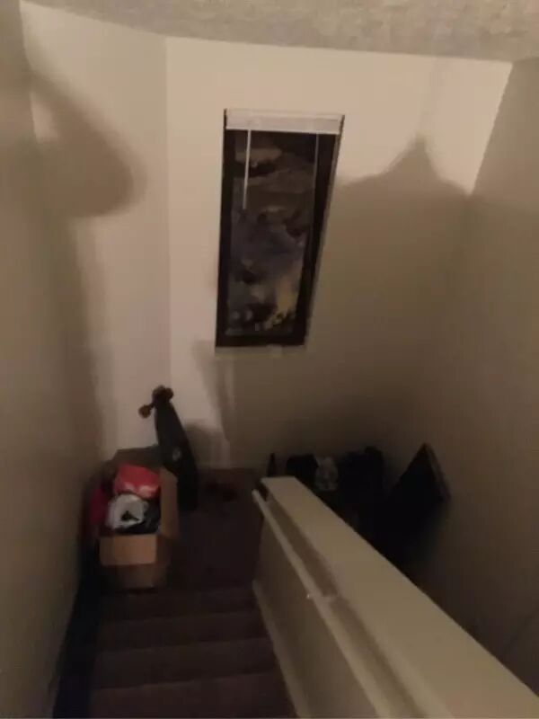 走到楼梯口就看到迎面有三个人,第一个人是拉丁裔或者白人,第二个人是黑人,第三个人带着Hoodie看不清。