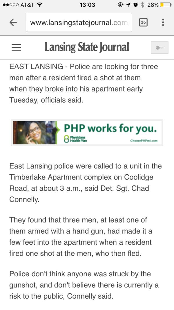 今天的故事就发生在密歇根州立一位中国留学生家中,在晚上被犯罪分子破门而入时,用手中的枪支勇敢地保护了自己和室友而避免了另一起悲剧的发生。