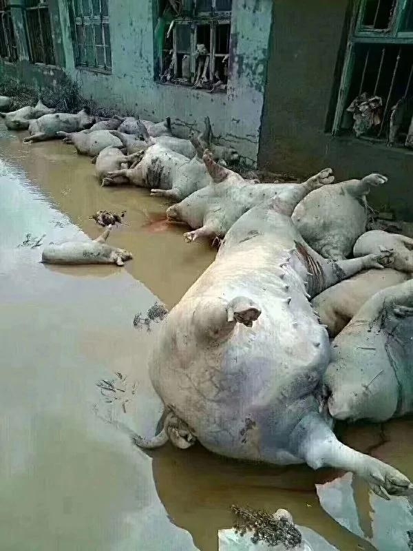 上万头猪死于洪水。(大陆网友提供)