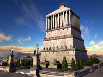 这座伟大的白色大理石陵墓是为摩索拉斯和他的妻子修建的。整座建筑由两名希腊设计师设计,外面装饰以奇异的雕刻花纹。建成之后就声名远播,公元15世纪初毁于大地震。伦敦大英博物馆还收藏有一点剩余的雕刻。