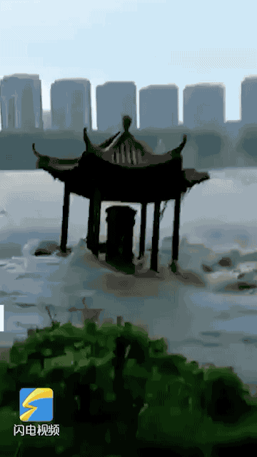 11日,受“利奇马”带来的强降雨影响,山东河水水位上涨,多个村庄暴发洪水。在潍坊,弥河上游突发大水,导致潍坊临朐县句月湖亭子在水流中倾倒。