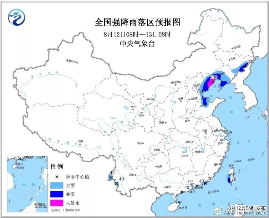 中央气象台8月12日06时发布暴雨蓝色预警,预计,山东北部、河北东北部、天津东部、辽宁中南部、吉林东部等地有大到暴雨,其中,河北东北部、辽宁西南部等地的部分地区有大暴雨(100~200毫米)。上述部分地区伴有短时强降水(最大小时降雨量20~50毫米,局地可达60毫米以上),局地有雷暴大风等强对流天气。