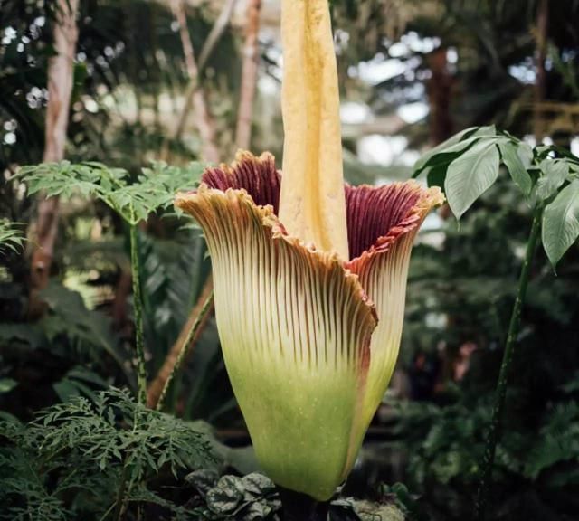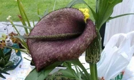 尸香魔芋是天南星科多年生草本植物,又称为“尸花”、巨魔芋,它还有更形象的一个名字“尸臭魔芋”。尸香魔芋原产于苏门答腊岛,是世界珍稀濒危植物,在人工栽培的情况下开花十分难得。