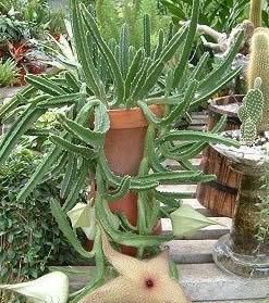 花大有恶臭以吸引蝇类传粉。植株茎粗,四棱形,具沟,常有颜色或被侧枝覆盖。无真正的叶,仅有鳞片或刺。花著生于茎棱,有紫色、红色或黄色的带和斑点。少数种栽培观赏。百合目(Liliales)菝葜属(Smilax)的牛尾菜(S. herbacea)原产美洲,为木质藤本,因其花恶臭,亦称腐臭花。