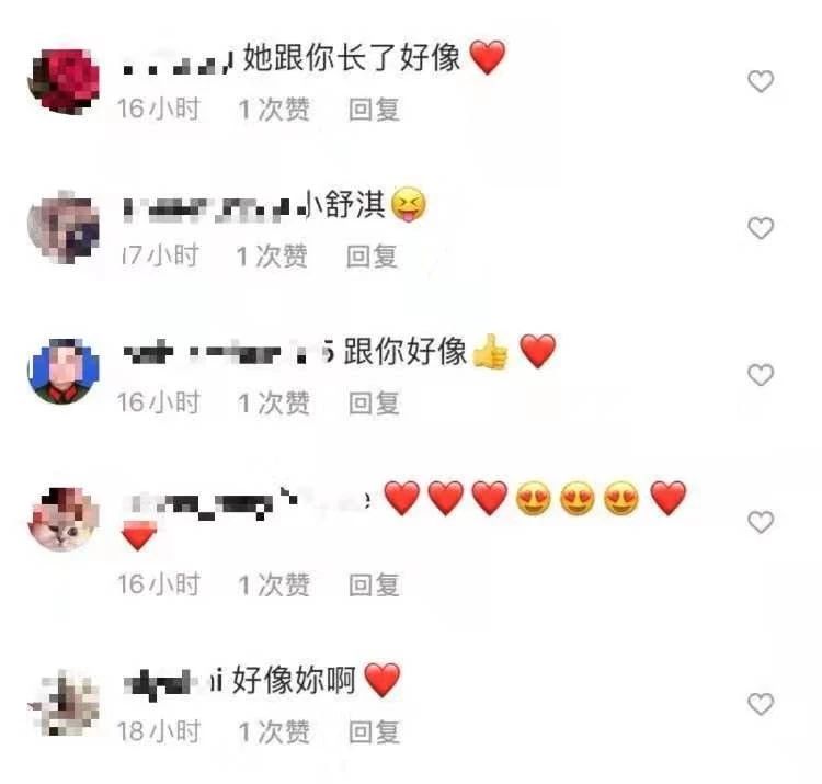 看见舒淇晒出来的小侄女的照片,网友们也纷纷评论:你们两个长得太像了!小侄女分明就是小一号的舒淇嘛!