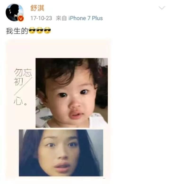 其实不光网友们认为舒淇和小侄女长得很像,就连舒淇自己也这么认为。早在2017年,舒淇就曾经在微博上晒出她和小侄女的拼图照,并配文:“我生的!”