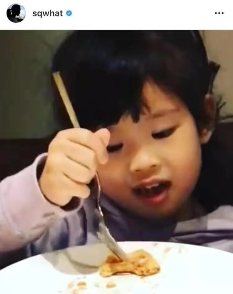 小侄女圆圆的脸蛋,大大的眼睛,一头浓密的头发,看起来天真可爱。小女孩掉了一颗牙齿,吃起饭来也慢了不少,舒淇便用镜头帮她记录了下来。