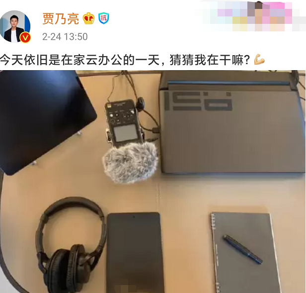 2月24日,贾乃亮在社交平台又发动态,他表示自己在家“云办公”,从照片中可以看到,桌面上摆放着许多公办用品,其中有电脑、记录本、耳麦、手机以及收音设备,看起来也是蛮专业的,应该是在做录音的工作。贾乃亮还发出加油的小图标,网友纷纷夸赞他,并希望他可以照顾好自己的身体。