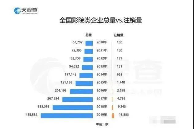 据天眼查显示,目前,我国共有47万家企业从事影院相关业务。自2010年起,影院类企业注册量逐年上升。其中,2010年至2013年平稳增长,2014年后增速持续加快,2017年起进入高速增长时期,当年增速达到33.2%。