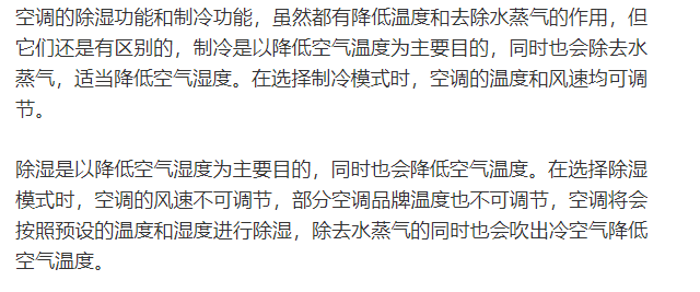最后我们再来说一说:空调的除湿功能和制冷功能有什么区别