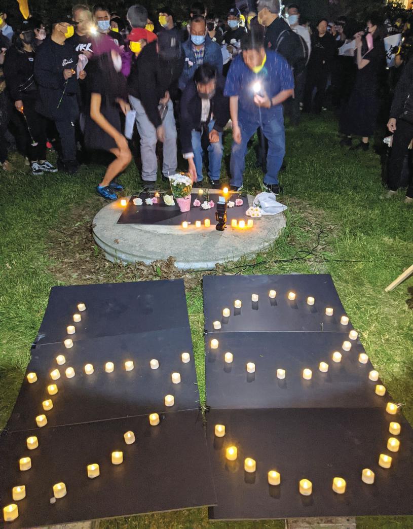 另外,大会播放在多伦多寻求政治庇护的香港失明律师陆耀辉(Joy Luk)的录音,她因身体不适,未能前来现场参加悼念活动。与会者以默哀,烛光和献花表达哀伤,而大会献唱《自由花》、《血染的风采》和《愿荣光归香港》等歌曲。
