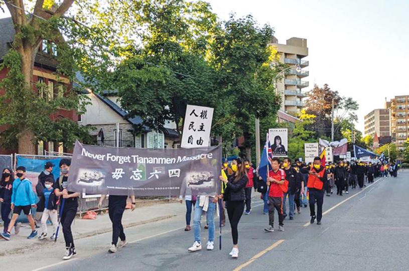 星岛日报/为纪念1989年天安门六四事件33周年,有团体昨天在多伦多举行游行集会,包括老中青三代超过2,000人参加。主办团体表示,继续要求平反六四事件,并且斥责中共政府侵犯香港和新疆等地的人权,同时要求中共释放政治犯。