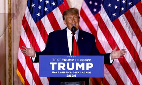 阿波罗网方寻翻译报道/英国卫报16日报道,周二晚上,川普在佛罗里达州海湖庄园宣布了他连续第三次参加总统竞选活动,他明确表示,他认为自己是2024年共和党提名的唯一可接受选择。