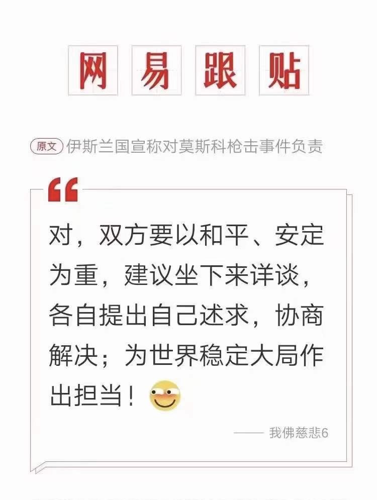莫斯科恐怖袭击发生后,网友们纷纷表示要劝和促谈,不要拱火浇油…