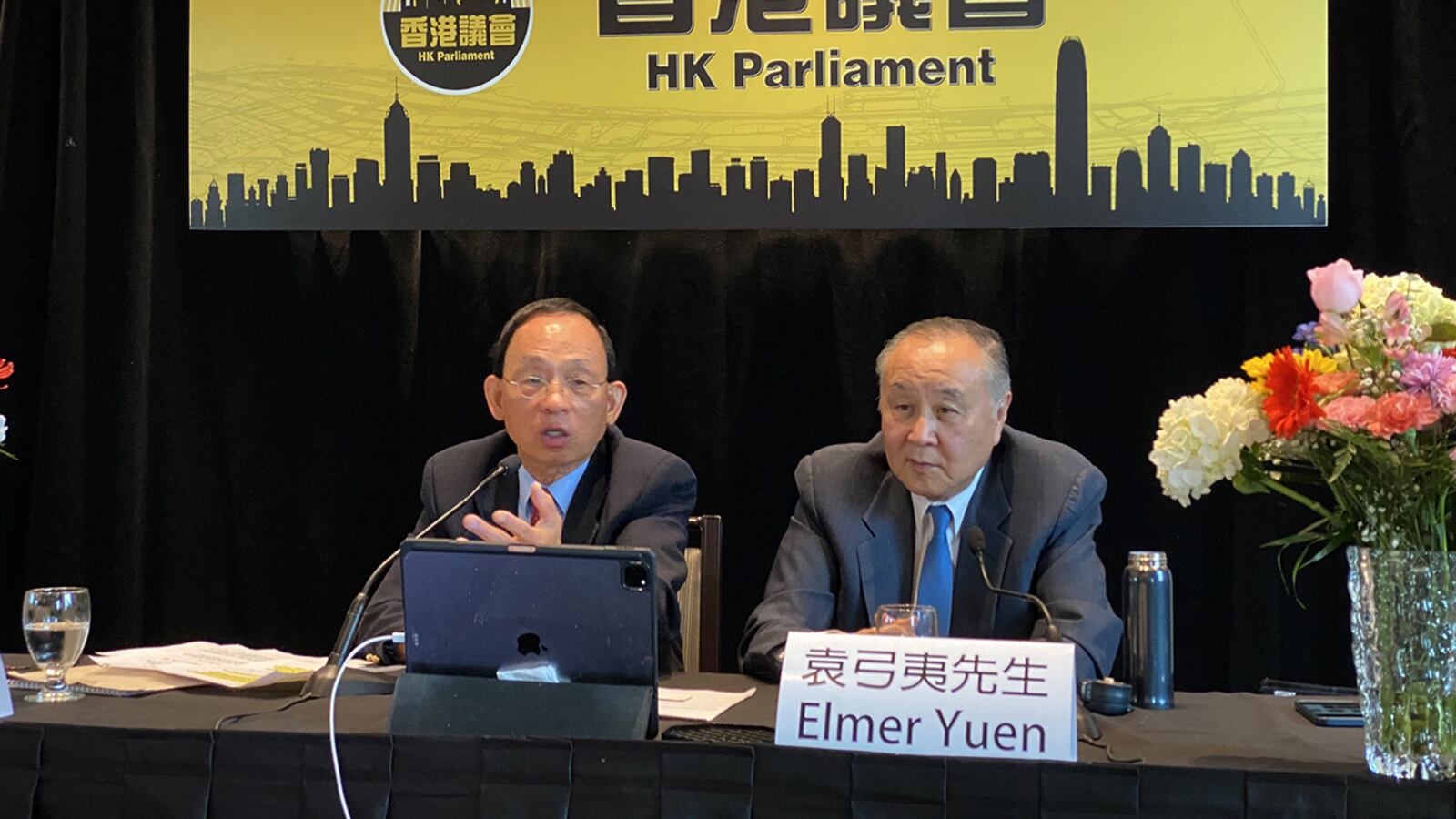 香港议会筹委会主席何良懋(左)批评香港政府是进行跨国镇压和外国干预,称如期会在2025年3月举行香港议会选举。(何良懋脸书)
