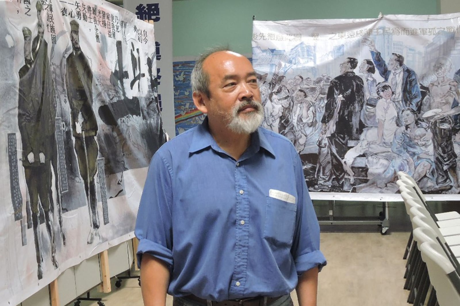 王康参加长篇史诗画卷《浩气长流》旧金山巡展开幕式活动(CK摄)(Photo: RFA)