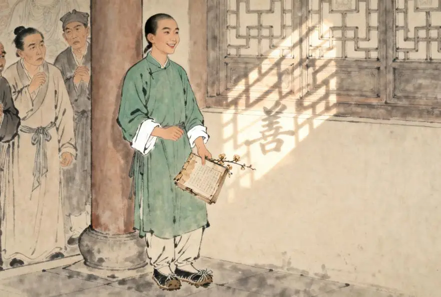 智空尼的目光最后落在了人群角落里的一位年轻书生身上,他穿着洗得发白的青布长衫,手里拿着一本旧书,正安静地站在那里,听着智空尼说话。这位书生,名叫苏文谦。