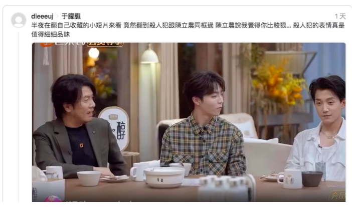 片段被挖出让网友惊吓直呼“杀人犯的表情真是值得细细品味”,众人纷纷留言表示“他说话都不看人的?”、“连上电视都在说谎,什么狠不起来”、“他讲这句话时眼神回避”、“原来这就是睁眼说瞎话,讲这句的时候就很狠”,来自台湾的陈立农过去从节目《偶像练习生》出道,出道后一直在中国发展,就有网友担心道“等等陈立农,我也担心他了”、“眼睛都不看人,眼神很怪我也很担心农农”。