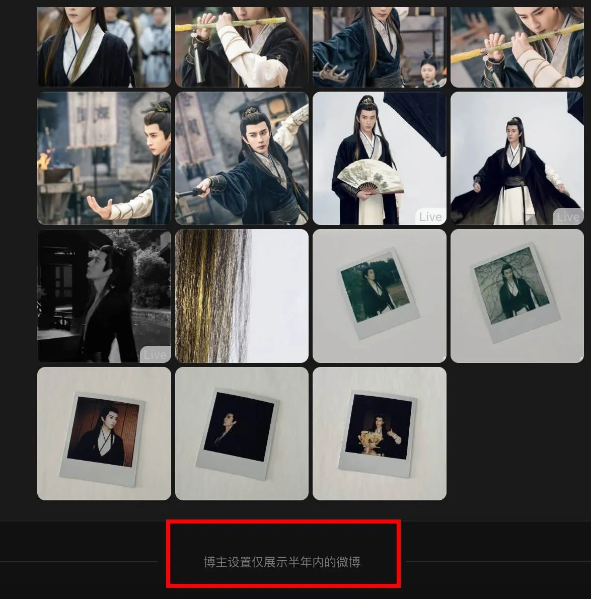 于朦胧的官方微博设定了“仅半年可见”,因此随着时间推移,过去的文章、照片都会被自动隐藏,在本人骤逝后,粉丝也有请求相关工作人员将半年可见解除,但并没有得到回应。