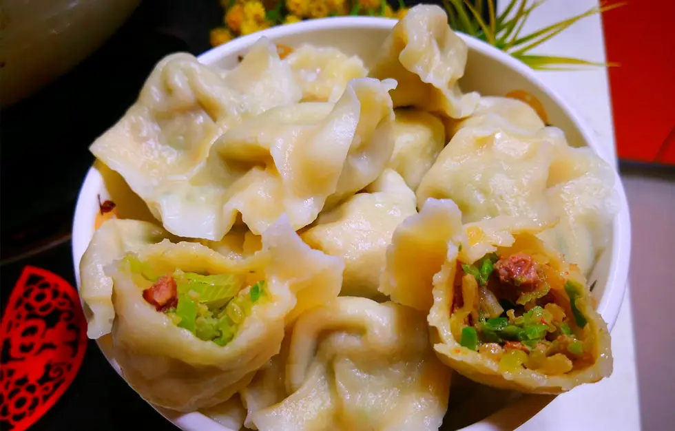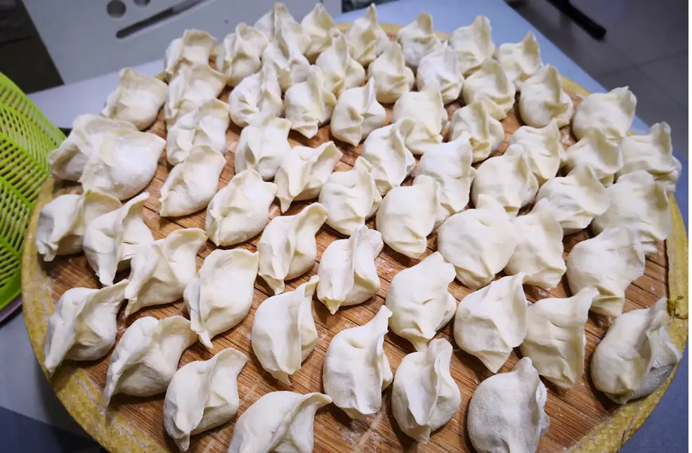 再来煮饺子,煮饺子看起来简单,煮起来却也是有门道的,水开后下饺子,饺子全部下入锅里后,用勺子轻轻推几下,防止饺子沉到锅底粘锅。等到水再次沸腾时,点入半碗凉水,反复三次,看到饺子全部都浮起来,肚子变得鼓鼓的,饺子就熟了。