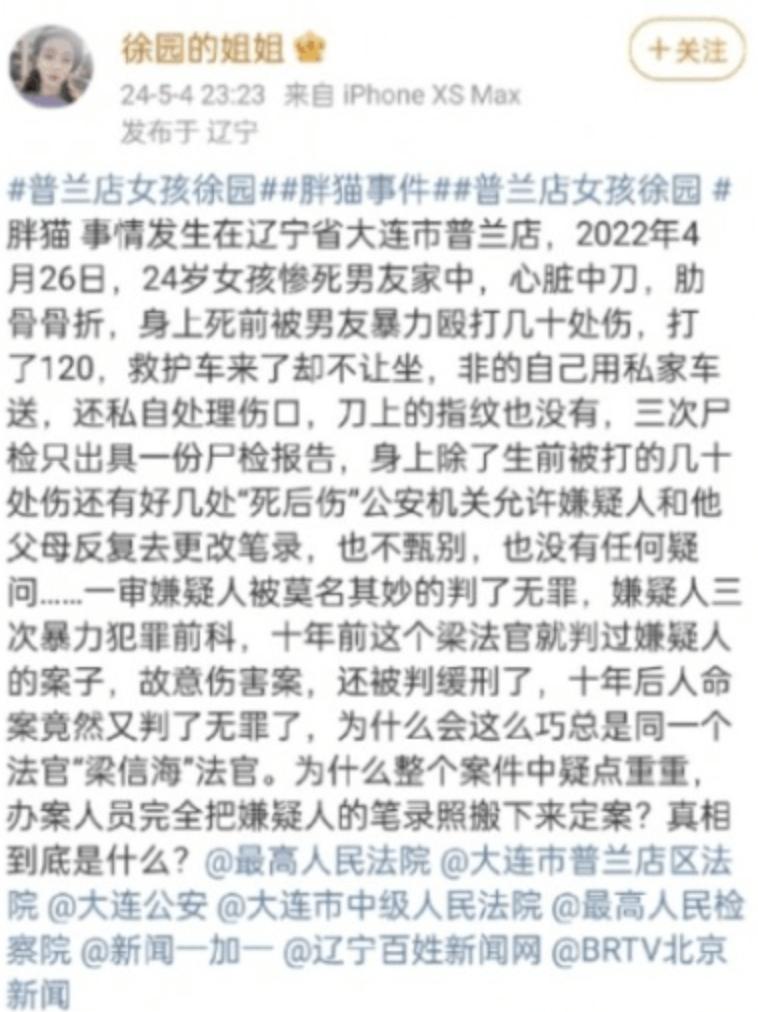 据多家陆媒10月25日报导,大连市普兰店区检察院对“徐园中刀身亡案”一审判决提起上诉。10月24日,法院宣布二审宣判结果,维持原判。