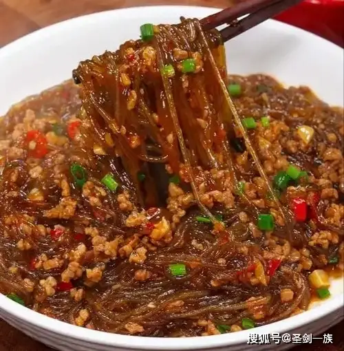 7、出锅前撒上葱花增香,即可装盘,一道香辣开胃的【香辣肉末炖粉条】就做好了。