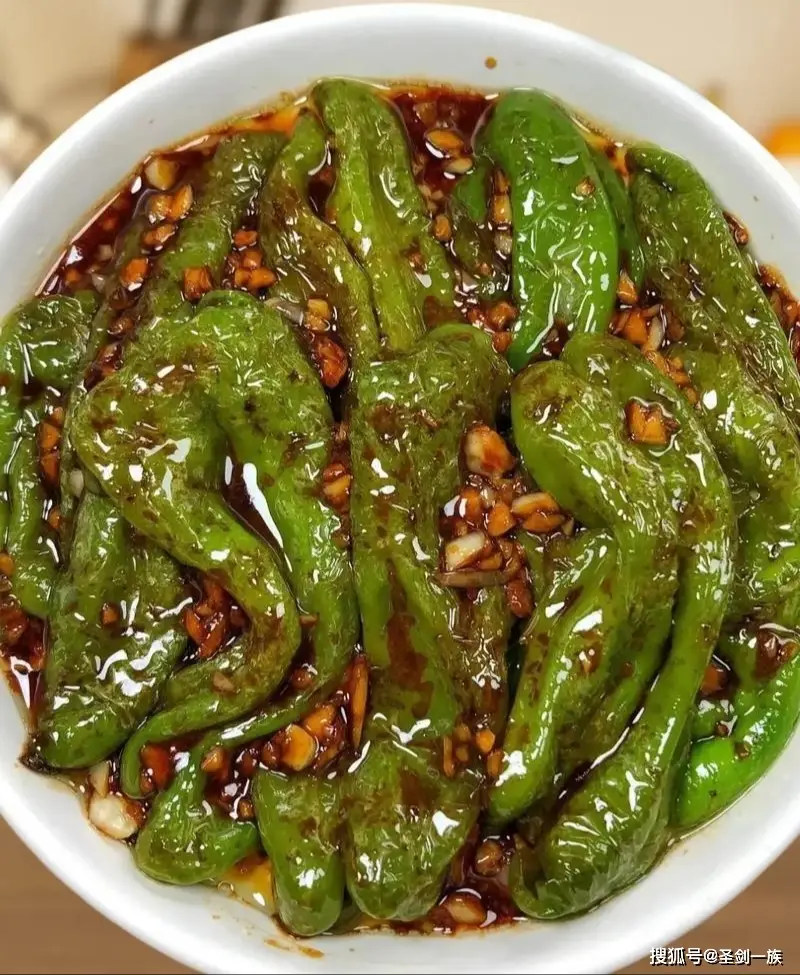 食材:青椒、蒜、生抽、陈醋、蚝油、老抽、糖、盐