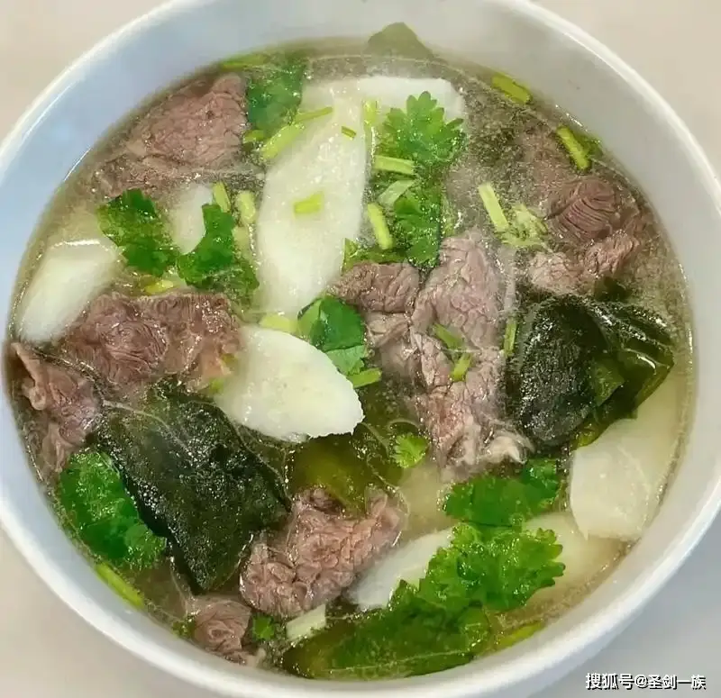 3.加入牛肉,煮至变色后加入适量盐调味。