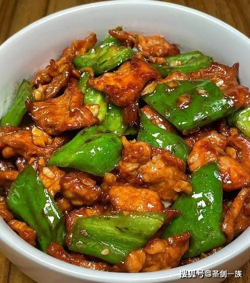 里脊肉、青椒、蒜末、生抽、蚝油、淀粉、白糖、盐
