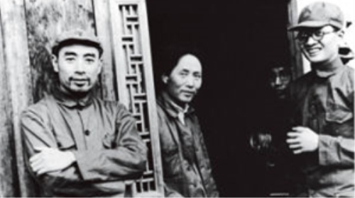 日本侵华期间,中共在延安大种鸦片。图为周恩来(左)、毛泽东(中)在延安。