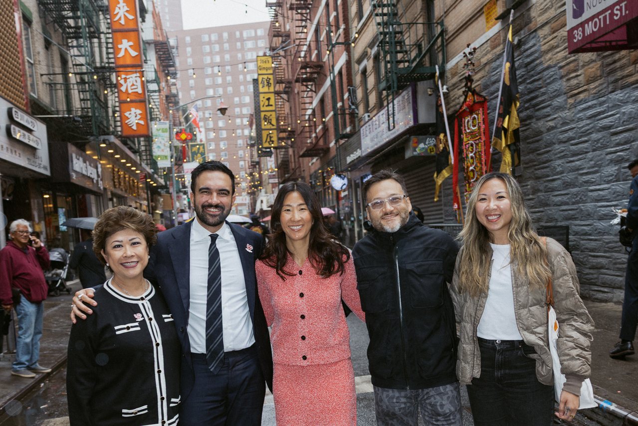 尽管距市长选举日还有近两周,民主党提名人曼达尼的阵营已开始与市议会举行会议,为自己的社区安全局计划争取支持。图为曼达尼11日与州众议员李荣恩走访曼哈顿华埠。(取自曼达尼官方X平台帐号@ZohranKMamdani)