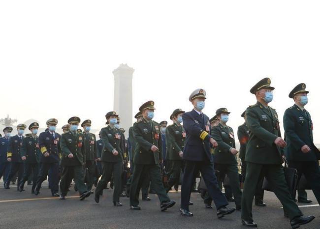 中共20大以来,解放军掀起史上最大规模的反腐风暴,高阶将领折损之惨烈令人咋舌。图为2023年3月5日,中国14届全国人大一次会议在北京人民大会堂开幕,解放军代表团正准备进入人民大会堂。(新华社)
