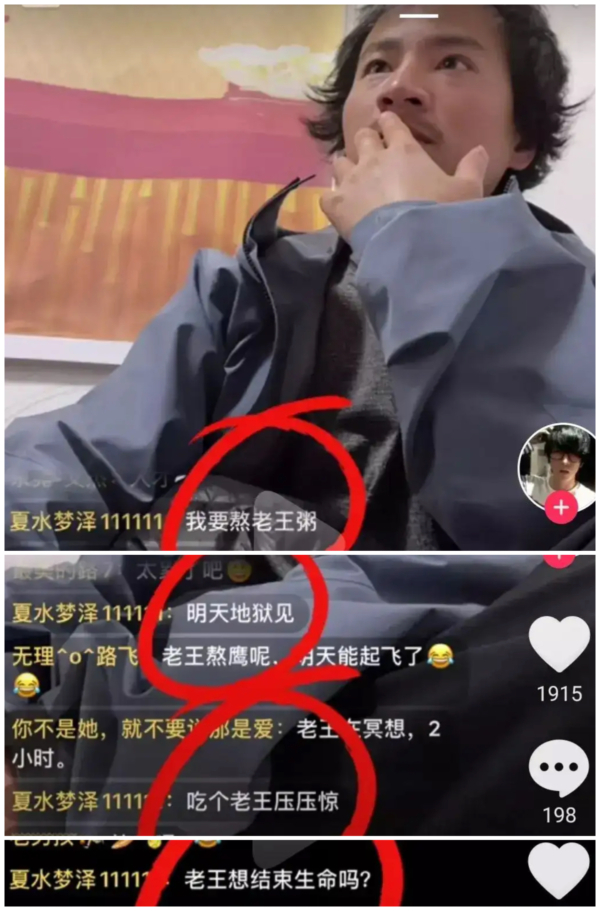 有人发现,王相军生前直播时,曾有账户“夏水梦泽111111”发出连串威胁:“熬老王粥”“吃个老王压压惊”“明天地狱见”。