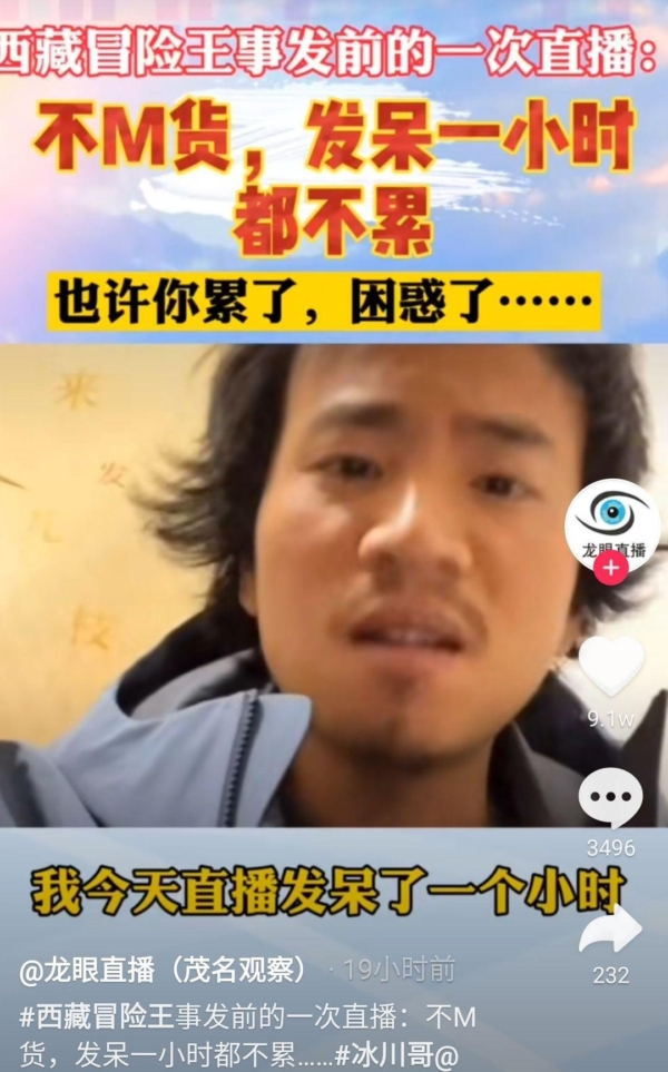 王相军花了7年时间徒步攀登70多座冰川,欣赏和记录了罕见的冰川美景,被外界称为“冰川哥”“王子”“西藏冒险王”等,在平台上收获了数百万的粉丝,粉丝们都亲切地管王相军叫“老王”。